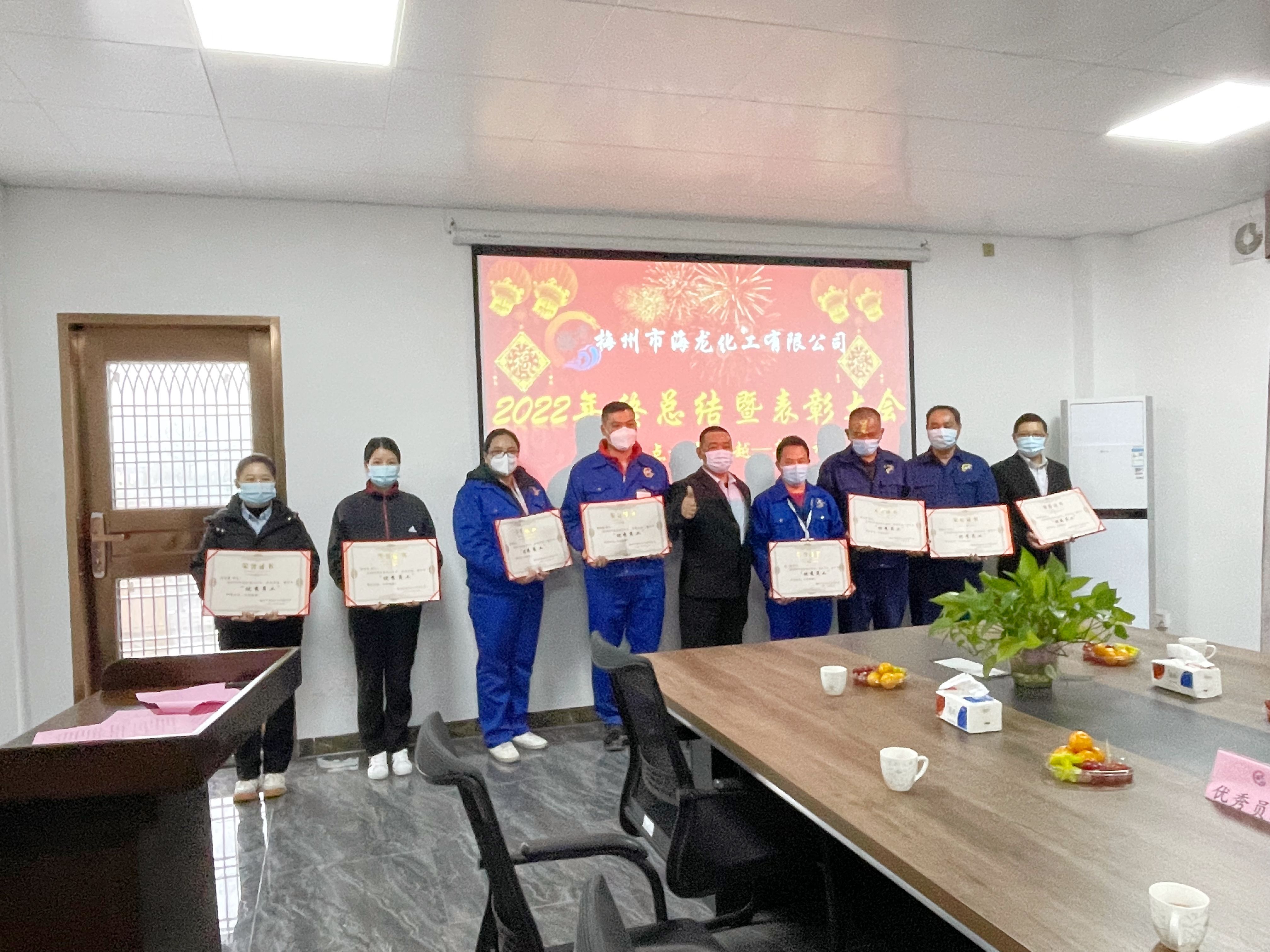 砥礪前行共奮進(jìn),奮發(fā)有為開新篇。為總結(jié)過(guò)去,展望未來(lái),鼓勵(lì)先進(jìn),表彰優(yōu)秀,2023年1月9日下午,梅州市海龍化工有限公司2022年終工作總結(jié)暨表彰大會(huì)在總部辦公樓會(huì)議室隆重舉行。