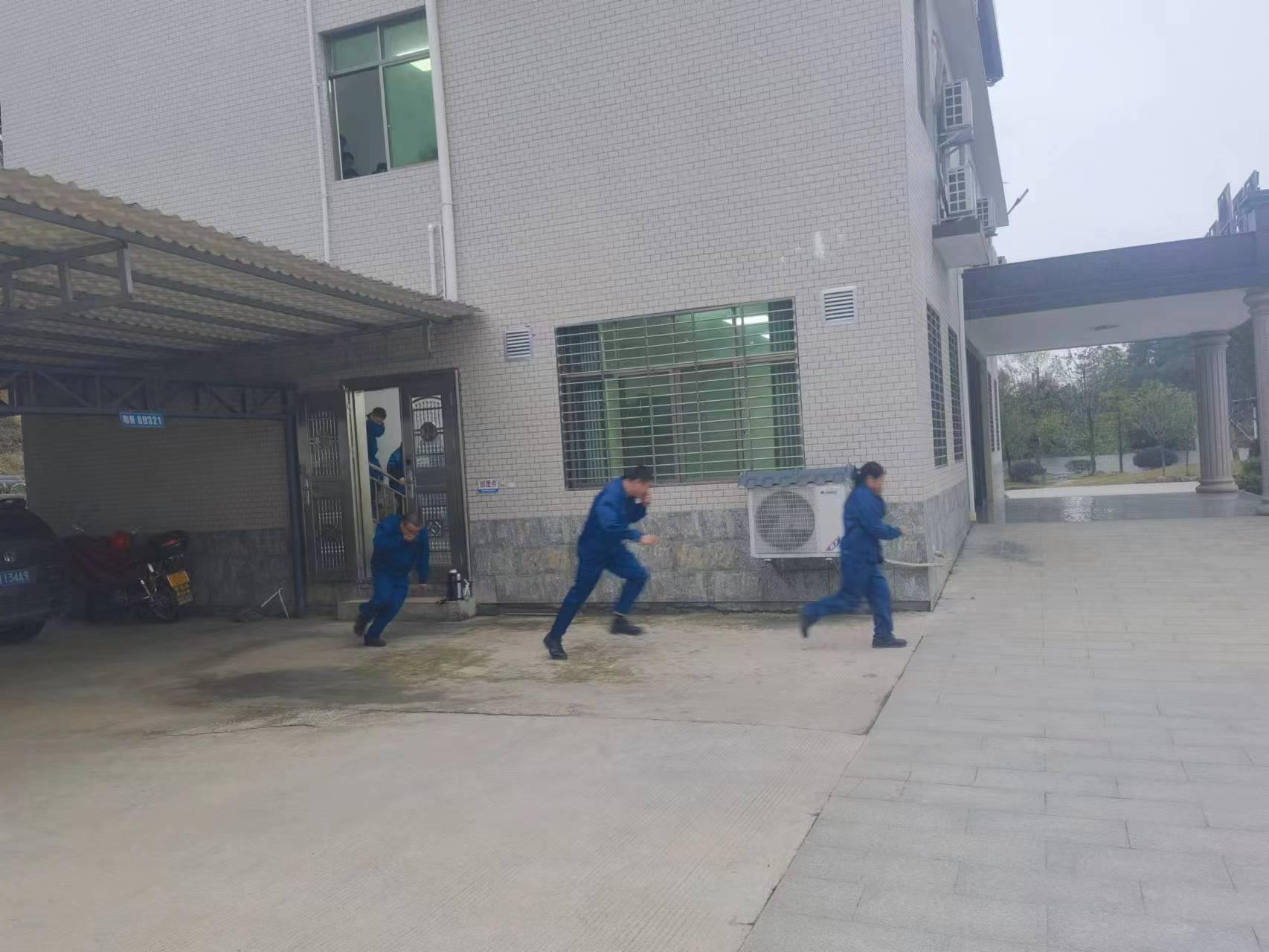 演練正式開始,模擬員工宿舍濃煙升起,火警報警聲響起,全體員工按照《消防應(yīng)急疏散預(yù)案》的要求,彎著腰,捂著口鼻,按指定安全消防通道,有序撤離至安全地點(diǎn)。
