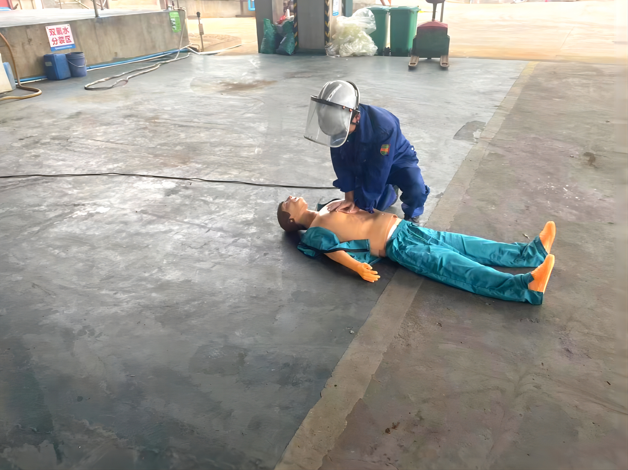 人員觸電演練:附近正在作業(yè)的同事發(fā)現(xiàn)有人員觸電,迅速斷開該電纜線電源開關(guān),隨后立即組織人員報120并對受傷者進(jìn)行心肺復(fù)蘇,,并轉(zhuǎn)移至廠區(qū)外等待120急救車。