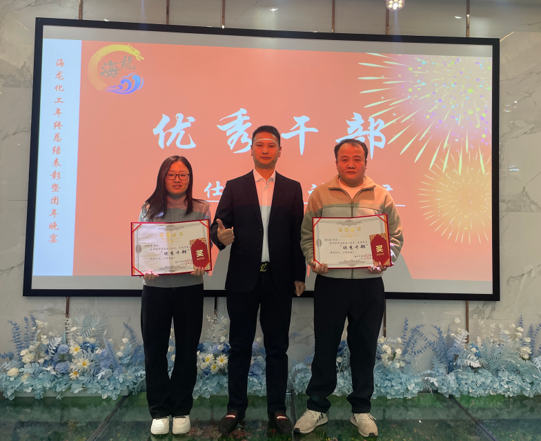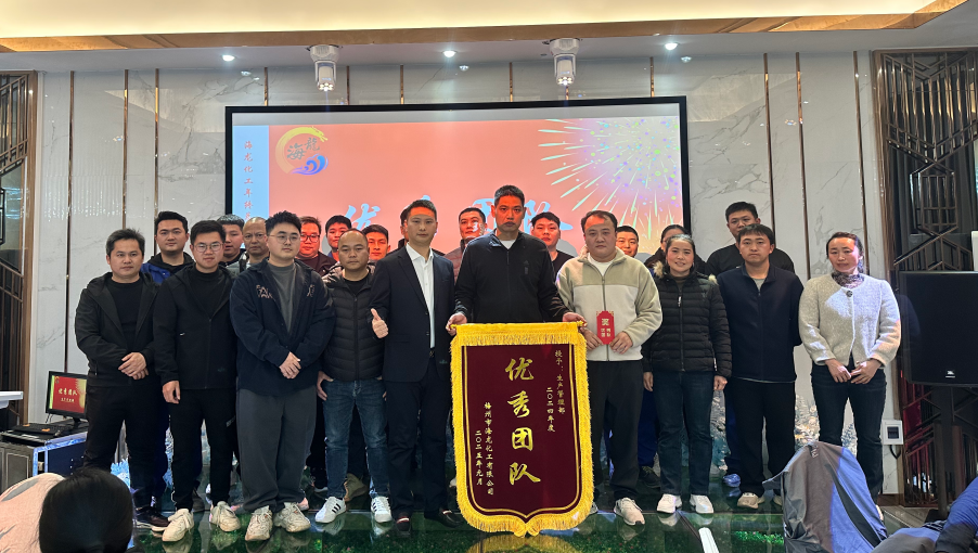 祥龍辭歲福澤厚,靈蛇納祥好運來。海龍化工2024年終總結(jié)表彰大會暨團年晚宴于1月14日宴慶樓酒店盛大召開。會議旨在回顧公司的發(fā)展歷程及全面總結(jié)2024年工作成果,并為2024年取得優(yōu)異成績和為公司作出突出貢獻的管理人員、優(yōu)秀員工、優(yōu)秀團隊等給予了表彰和頒獎。