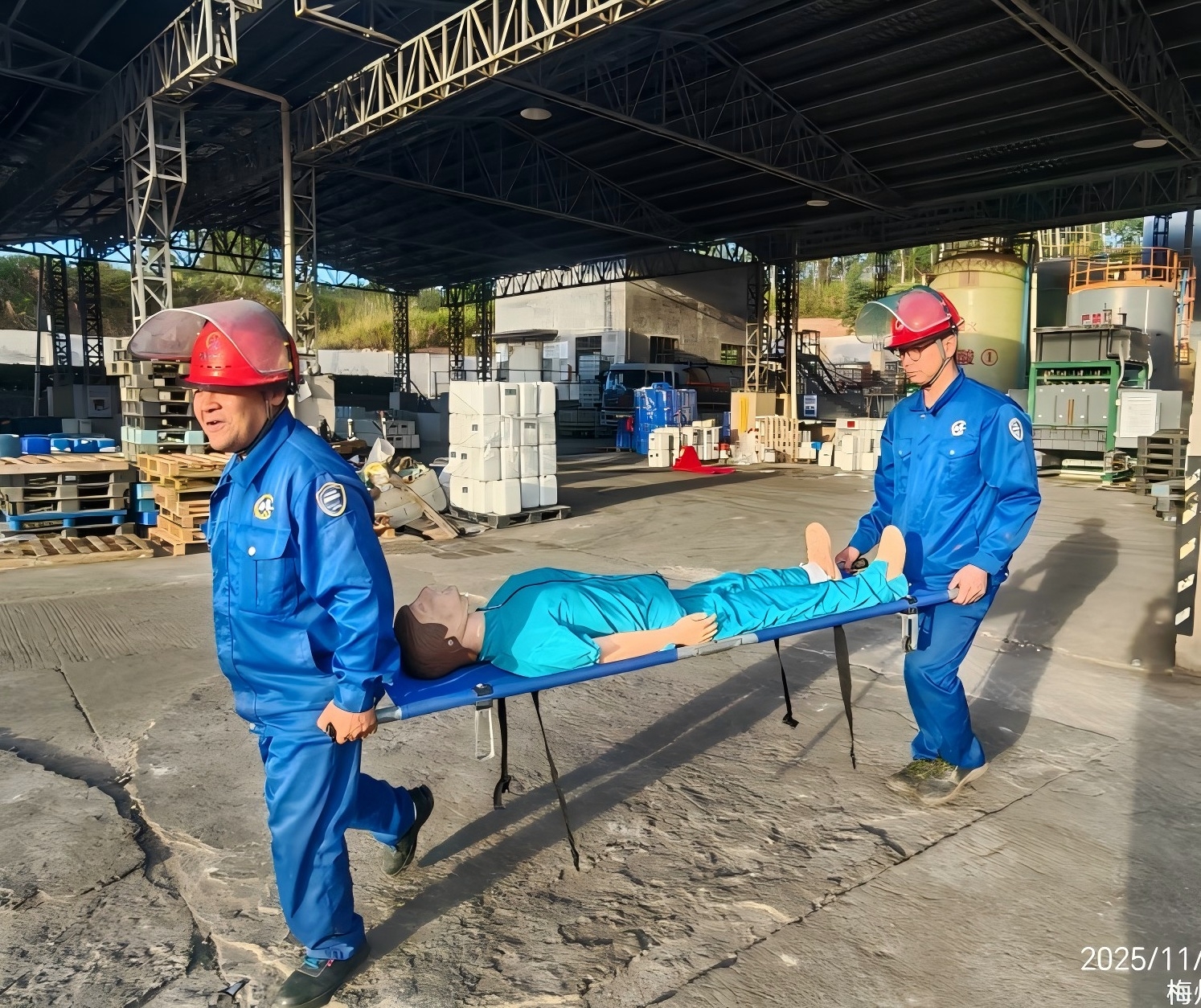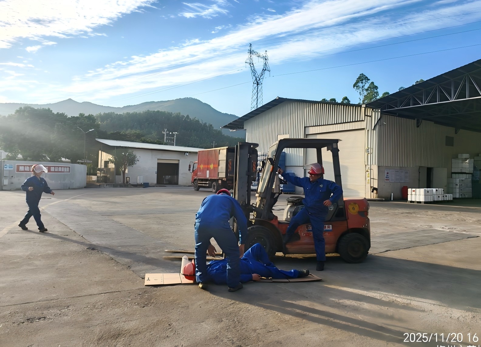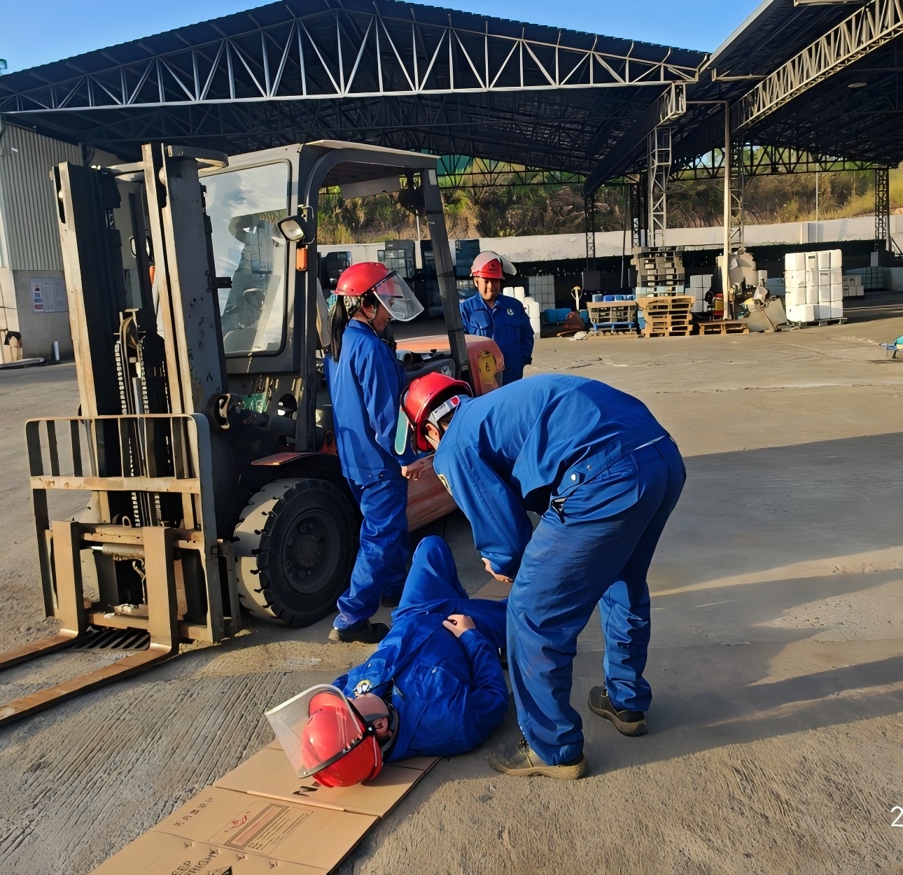 碰撞發(fā)生后,叉車駕駛員立即停止作業(yè),并大喊:“撞人了,撞人了”,周邊正在作業(yè)的同事聽到呼救后,立刻前往查看情況并幫助傷者扶下躺平,隨后立刻向車間主任匯報(bào)情況。